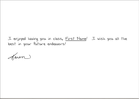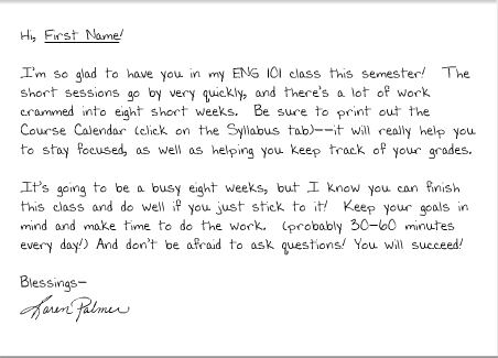 The first card went out the first week of class. I introduced myself and welcomed students to the course.